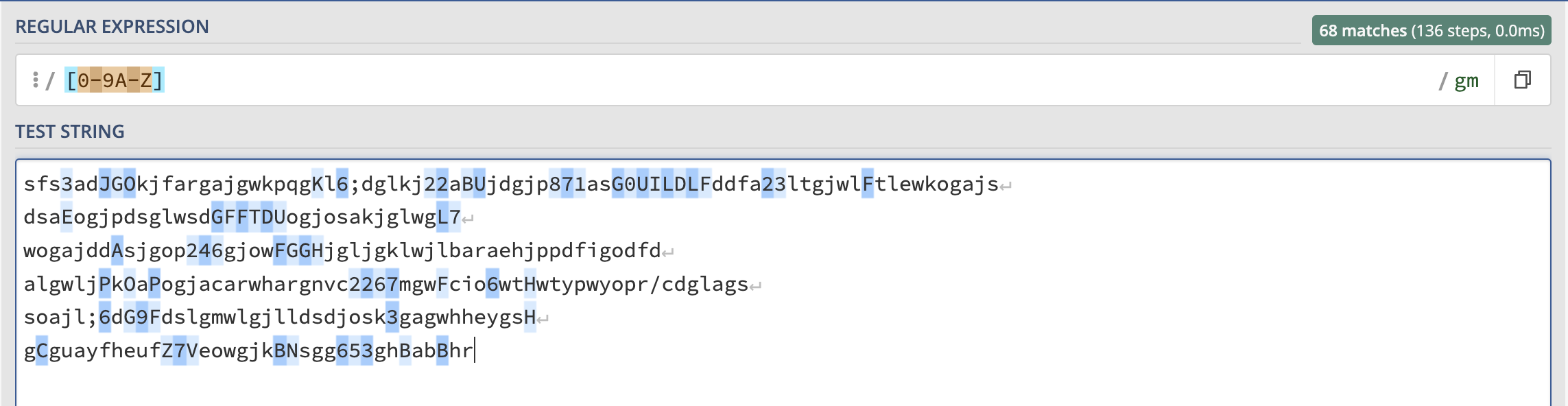 플래그 설정이 gmi로 바뀌면서 대소문자 구분없이 알파벳이 연결된 부분이 모두 선택되었다. 참고로 문장 끝의 소문자 알파벳이 선택이 되지 않은 것은 함께 선택되어야 하는 짝이 없기 때문이다. (둘씩 짝지어 짐)
