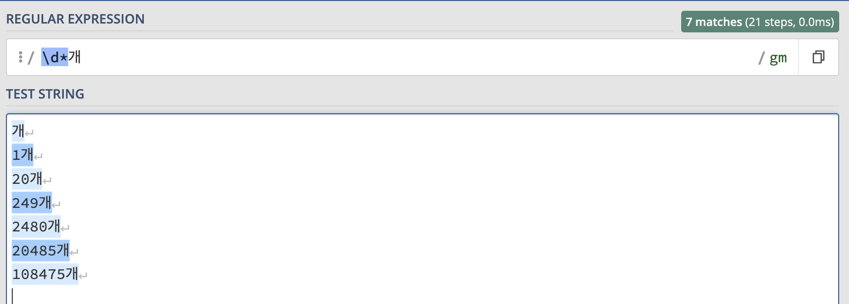 * : 제한 없이 모든 숫자를 나타냄, 앞에 문자가 하나도 없어도 선택해 줌