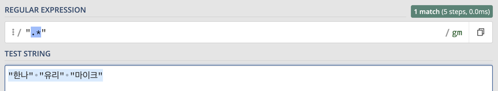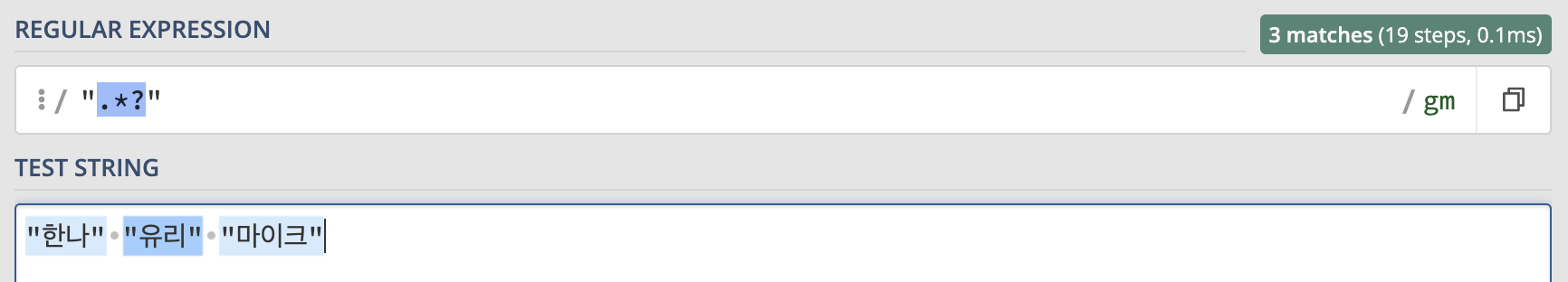 → 게으른 수량자 ?를 사용하여 따옴표를 각각 선택하게 함