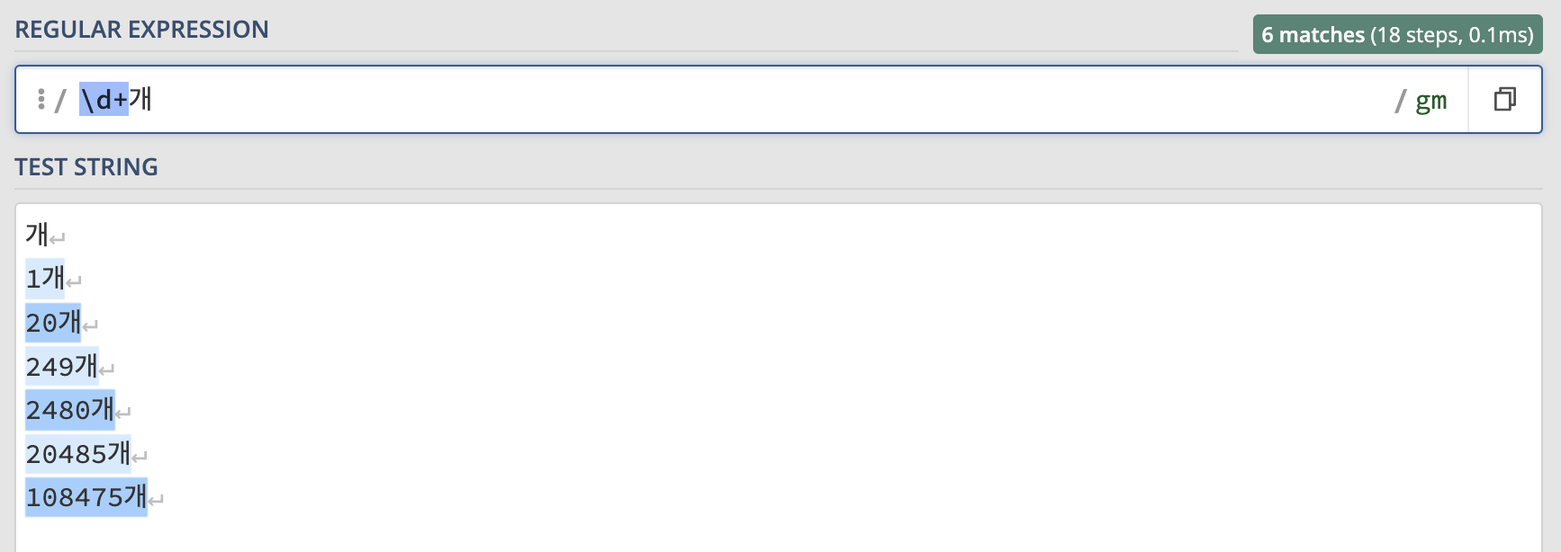 + : 제한 없이 모든 숫자를 나타냄, 앞에 문자가 최소 1개는 있어야 함
