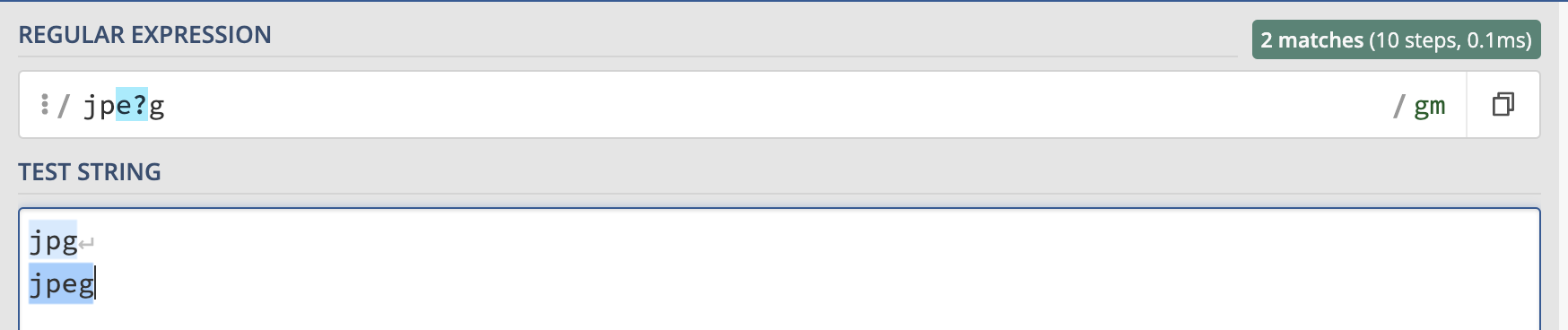 문자가 아예 없거나 하나만 있을 경우를 선택할 때는 물음표(?)를 사용한다.