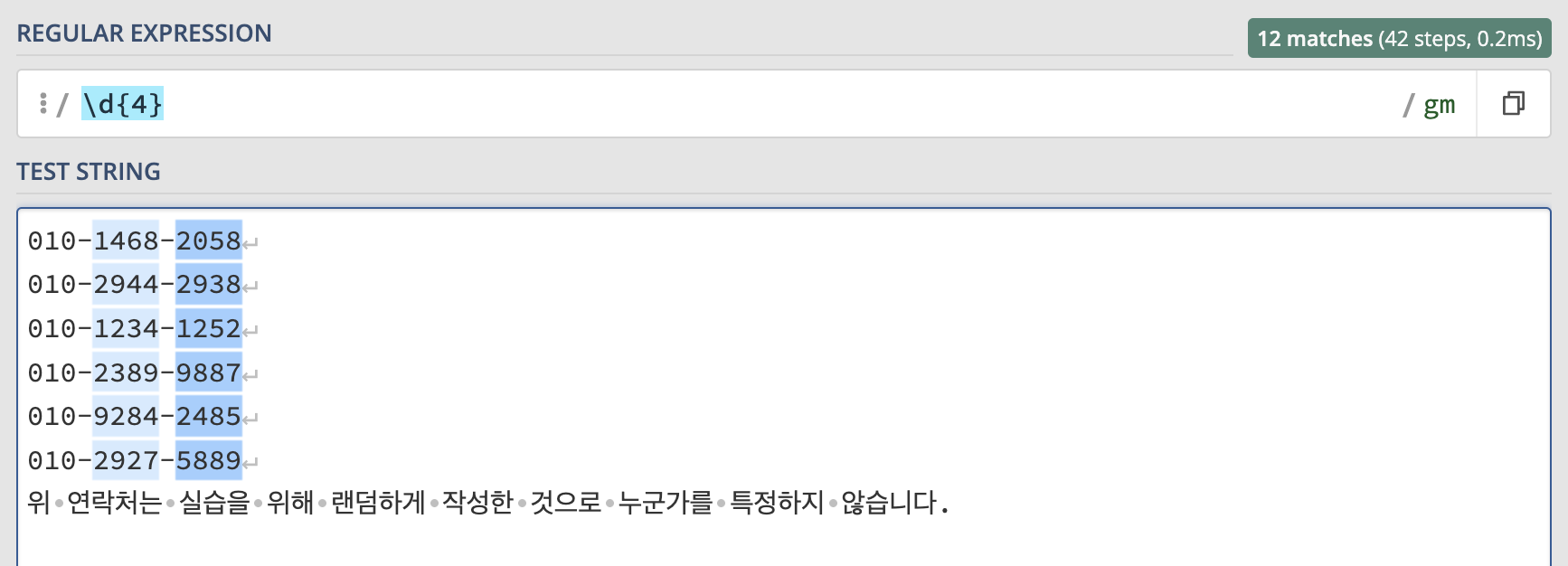 \d{4} 외에 아래와 같이 써도 동일한 결과를 얻을 수 있다.