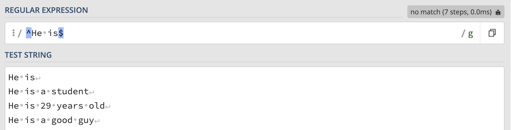 캐럿(^)은 집합 안에서는 부정의 의미로 사용되는 메타 문자이지만, 집합 밖에서 쓰이면 경계의 의미를 갖는다는 것도 함께 알아두면 좋을 것 같다.