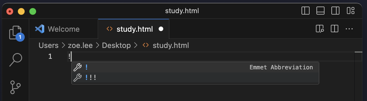 그 다음 느낌표(!)를 쓰면 아래에 자동 완성 창이 뜬다.