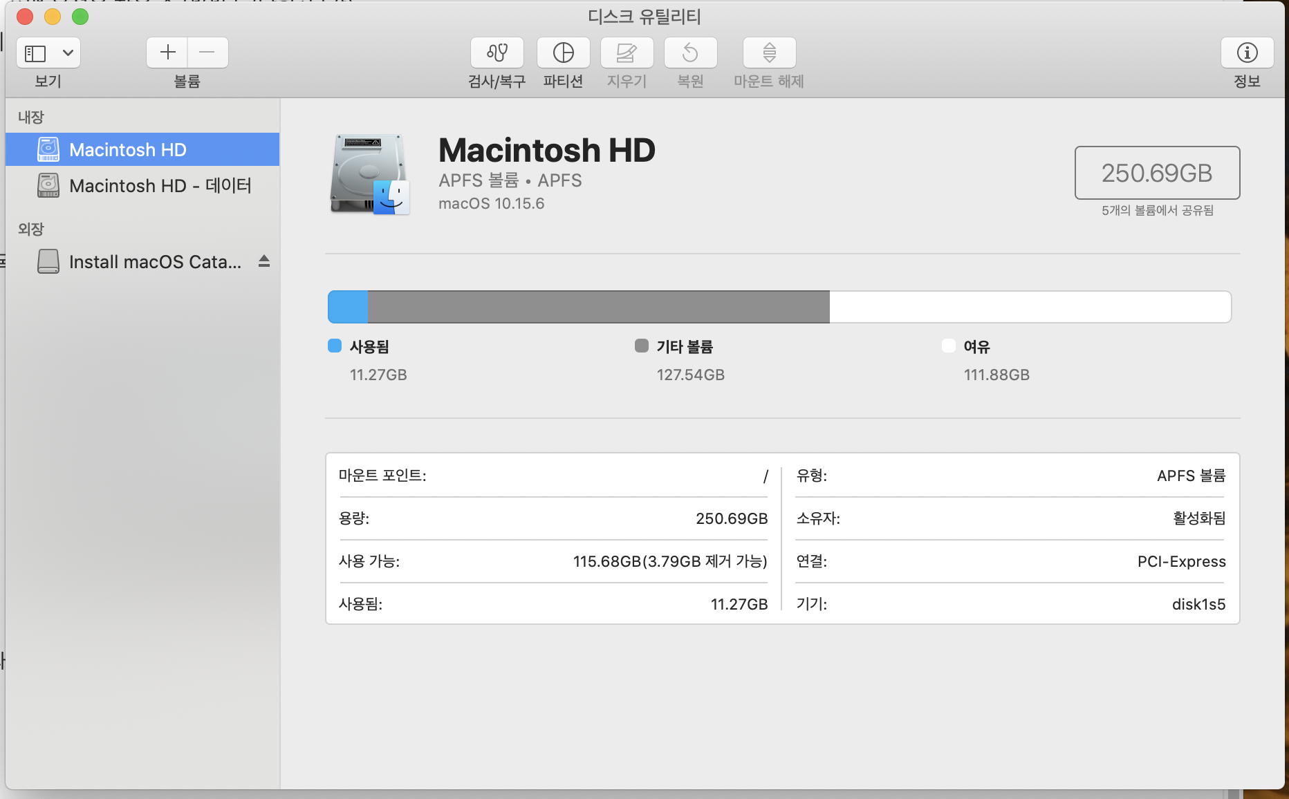 Launchpad 에서 설치되어 있는 app 목록을 보면 '디스크 유틸리티'라는 앱을 발견할 수 있을 것이다.
