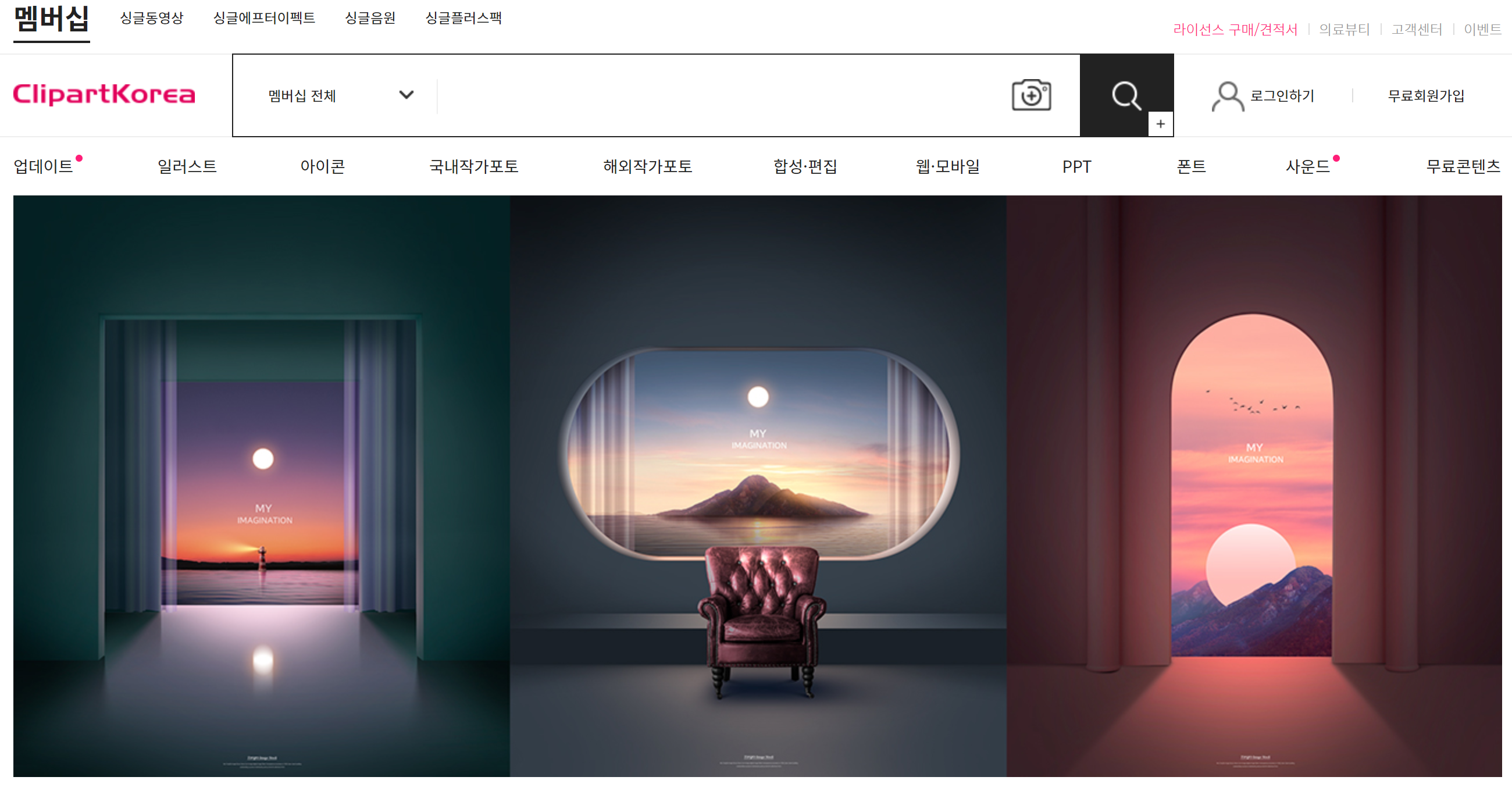 우리도 처음 2~3년간 이미지 투데이 라이센스를 구매하여 사용하다가 2017년부터 클립아트 코리아 라이센스를 사용하고 있으니 5년 이상 통로이미지와 함께 한 셈이다. (이미지 투데이와 클립아트 코리아 두 개 사이트 모두 통로이미지가 운영하고 있다.) 초기에는 웹디자인 부문의 라이센스만 사용했었지만, 점차 영역을 늘려 요즈음은 중소기업 웹디자인 뿐만 아니라 관공서, 쇼핑몰, 소셜/오픈마켓, 바이럴까지 영역을 확장하여 특약 라이센스를 사용하고 있다.