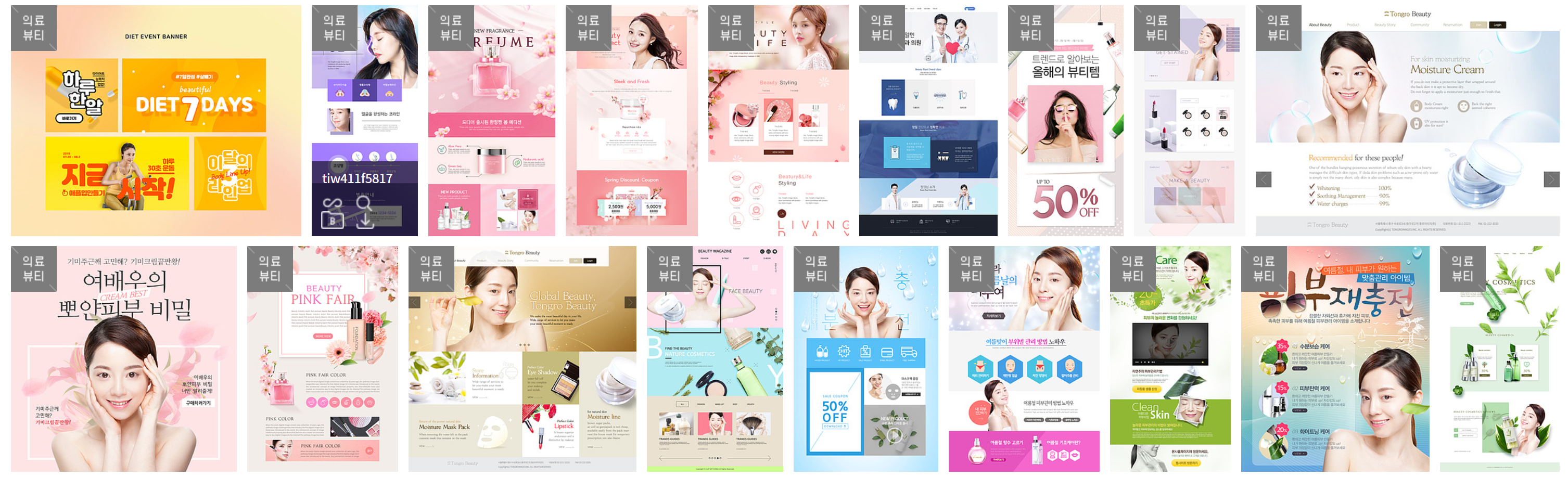 의료, 뷰티의 경우 초상권 해결된 이미지를 사용해야 하는데 클립아트 코리아에서는 "의료/뷰티" 분야 디자인 소스를 별도로 제공하고 있다. 의료뷰티 아이콘이 붙어있는 이미지들은 해당 분야에 자유롭게 사용이 가능하다.