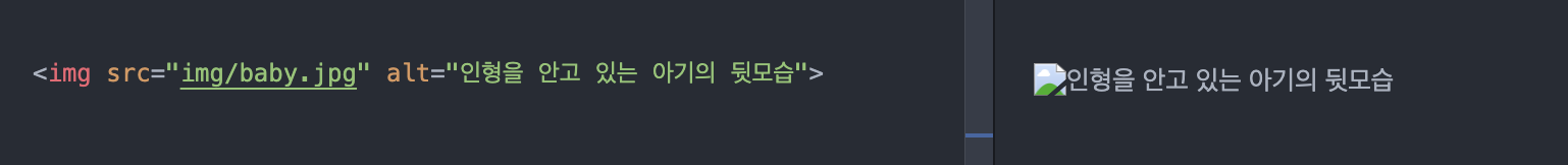 <img src="이미지 경로" alt="이미지를 표시할 수 없을 때 출력하는 이미지 설명">