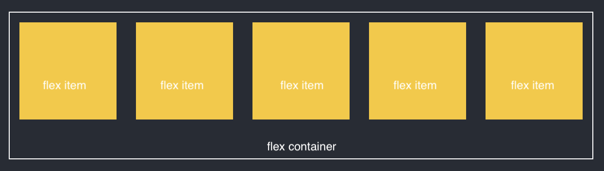 flexbox는 부모 요소인 flex container와 자식 요소인 flex item으로 구성된다. flex container가 flex 태그의 영향을 받는 공간이고, 그 안에서 flex item들의 배치, 정렬이 설정된 속성에 따라 변경되는 것이다.