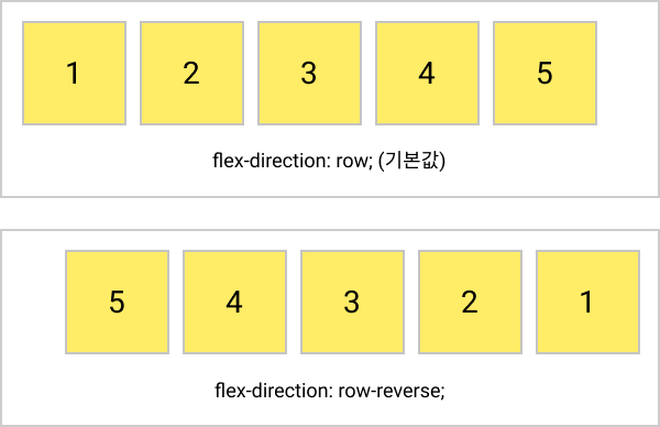 시작점은 flex-direction 속성값에 의해 결정된다. 역시 그림으로 보는 것이 편할 듯 하다.
