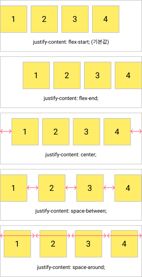 수평축의 정렬 방법을 설정하는 css이다. 속성값은 아래와 같다.